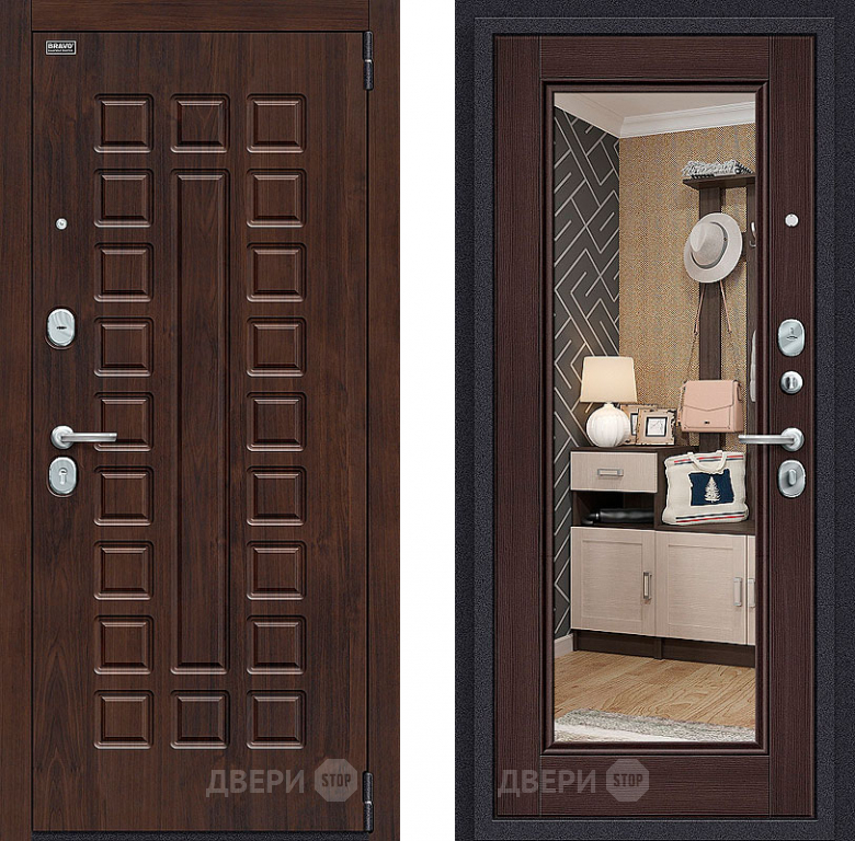 Входная металлическая Дверь Bravo Оптим Урбан с зеркалом Wenge Veralinga в Ивантеевке 860х2050 мм