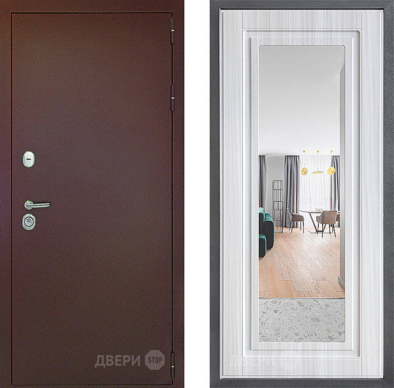 Входная Дверь Дверной континент Рубикон Медь Дизайн ФЛЗ Зеркало Сандал белый 860x2050 мм