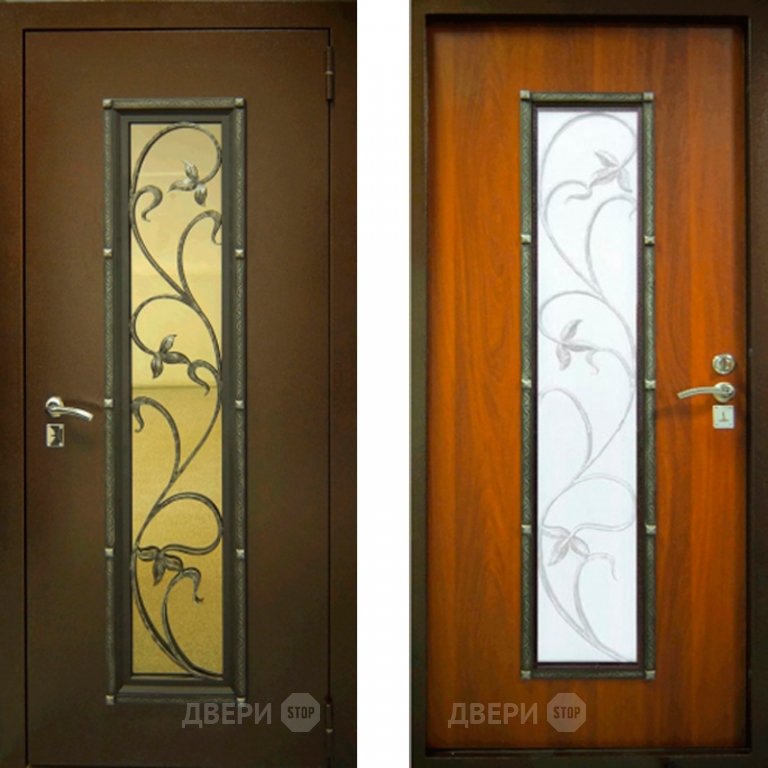 Заводские двери с ковкой и стеклом Лоза в Ивантеевке 860х2050 мм